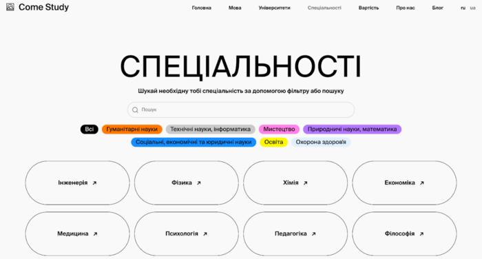 Посетите comestudy.ua, найдите свою будущую специальность и узнайте все нюансы поступления!