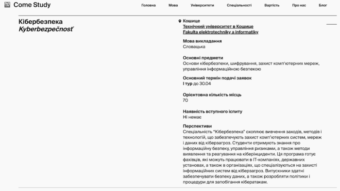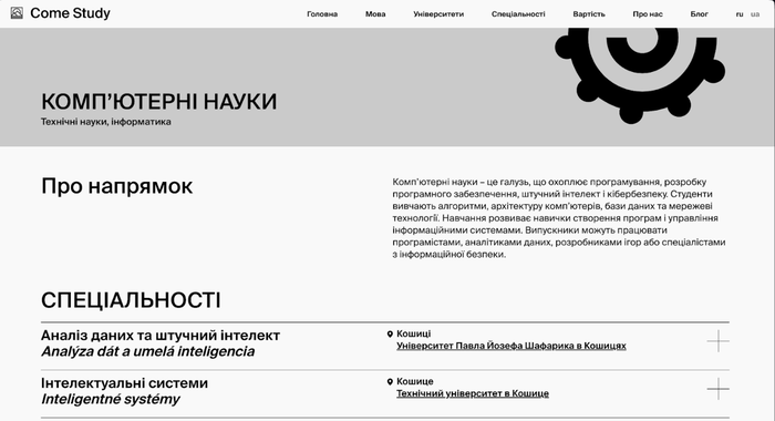 Чтобы сделать процесс выбора более простым и удобным, ComeStudy запустил уникальный сервис поиска специальностей на своем сайте comestudy.ua. Это первая система, позволяющая быстро найти специальность в словацких университетах и сравнить условия поступления.