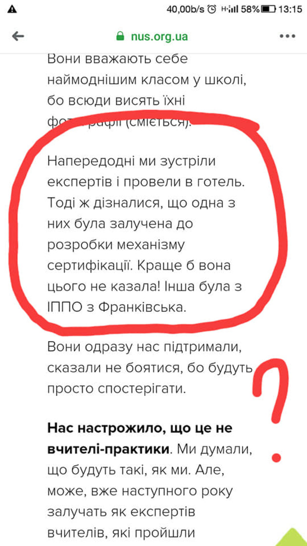 Мені дуже хотілося вірити, що процес сертифікації буде позбавлений залежності від суб'єктивної думки, залежатиме від наповнення, а не від обкладинки. Але ніт. Це теж має бути вистава у декількох діях. І примами мають бути далеко не вчителі.