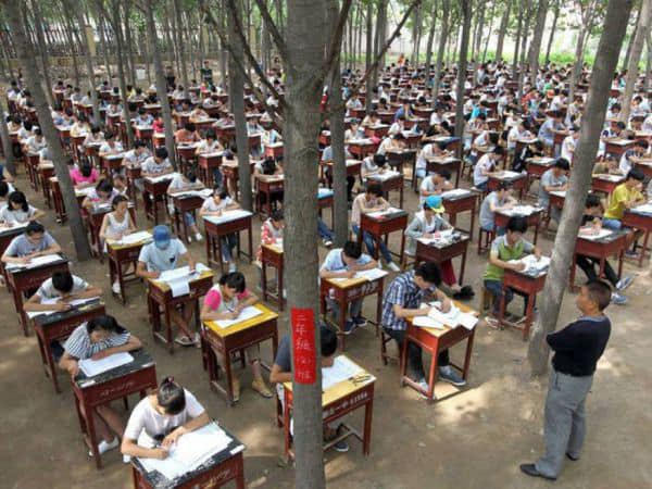 На світлині - екзамен у КНР. Дерева бачите?