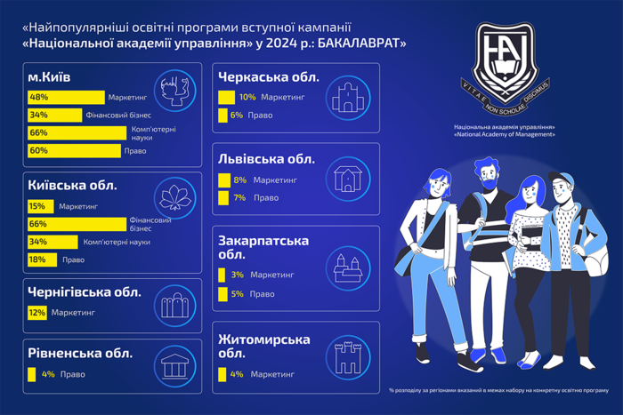 В заведении высшего образования «Национальная академия управления» (National Academy of Management) подведены итоги вступительной кампании этого года и опубликована информация о наиболее популярных специальностях в 2024 году среди поступающих.