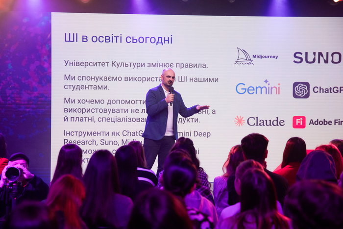 Во время презентации специалисты по искусственному интеллекту и ведущие преподаватели Киевского университета культуры провели увлекательное погружение в мир ИИ для студентов.