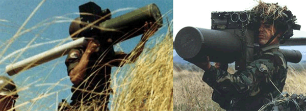 Британський ПЗРК Blowpipe з ручним управлінням (ліворуч). На його базі розроблено ПЗРК Javelin (праворуч) з напівавтоматичною системою наведення.