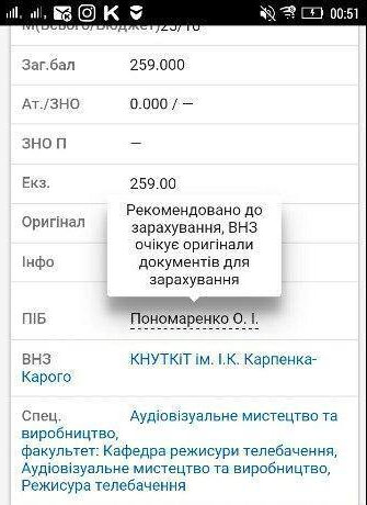Мій син, Александр Пономаренко (Olexandr Ponomarenko) давно і надійно розчаровує батька. Хоч батько йому вже років з п'ять тому сказав, що освіті в Україні приходить гаплик (і навіть заставив його довчитися з цього приводу до англійської на 186, а німецької на B2) він вперто вірить в якісь дива на кшталт чесного вступу, професійної гідності освітян і так далі і таке інше. І от, щоб остаточно добити старого (тобто мене) він пішов в Карпенка-Карого (!) на режисера (!!!) на бюджет (!!!!!). Туди, хто не знає, як в рідний КНУБіА, крім ЗНО здається ще "творчий конкурс". Бюджетних місць - 8. Ну, на курси ходив підготовчі, само собою. Ну і взагалі він в мене, на жаль, далеко не пролетарій - купа медалей з бально-спортивних танців, купа виграних для школи творчих конкурсів типу "Європа очима школярів", оповідання пише, організація і проведення чи не кожного фесту типу Comic Con чи там The Pit. Творча дитинка в цілому.