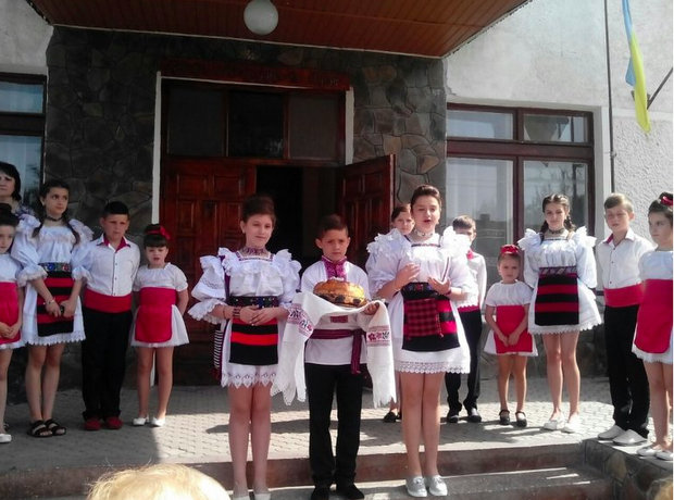 Типовим є і використання дітей у різноманітних «Хліб-сіль»-шоу для гостей школи, часто у виконанні сонних(замерзлих, голодних…) дітей. Див. на фото модерновий варіант привітання «юних піонерів» у вишиванках.