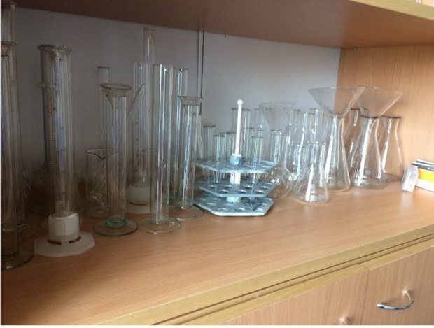 Хімія: витяжна шафа, набір скляного посуду, pH-метри, наочні матеріали: кристалічні гратки, зразки металів, скла, пластмас. Є навіть мобільний хімічний набір, з яким можна виїздити до місця забору зразків.