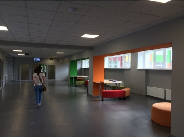 Вона вражає зсередини: величезні світлі коридори, яскраві відтінки, гарне економне освітлення, меблі, системи опалення, вентиляції, чудові просторі класи тощо.