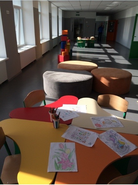 Спеціально обладнані класи для роботи з дітьми з особливими потребами. Тут є все для фізичного розвитку, кабінети логопедів, психологів і т. ін., невеличка кухня, де дитина може почувати себе вільно.