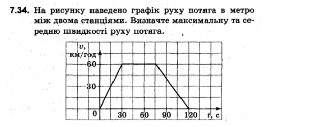 Почнемо з того, що поняття функції та її графіка вивчається в 2-му семестрі 7-го класу, причому на цю тему відводиться аж 10 годин, а дану задачу учні розв’язують в 1-му семестрі 7-го класу. З визначенням максимальної швидкості тут усе просто, а ось щоб визначити середню швидкість, треба спочатку дізнатись шлях, який пройшло тіло. А як же його дізнатись, коли відомий графік швидкості від часу? Відповідь на це питання знаходимо в підручнику з фізики 7-го класу авторів Бар’яхтар В. Г., та інші (сторінка 71)