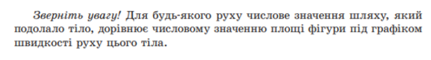 Все правильно написано. Але давайте уявимо ситуацію: у класі сидить допитливий учень і запитує вчителя «А чому саме так? Чому саме площа фігури під графіком? Чи є цьому якесь обґрунтування?» Звісно, обґрунтування звучить так: «Відповідно до механічного змісту похідної, швидкість є першою похідною від шляху, а отже, шлях є інтегралом від швидкості, а інтеграл від функції на певному проміжку чисельно дорівнює площі фігури під графіком тієї функції на тому проміжку». Та проблема в тому, що поняття похідної та інтегралу вивчається аж в 10 та 11 класі відповідно, тому в 7 класі учень це обґрунтування зрозуміти аж ніяк не зможе. Ладно, не будемо замислюватись над обґрунтуванням, просто затямимо це, як правило. Але ж тут треба знайти площу трапеції, формула для якої вивчається в 8 класі.