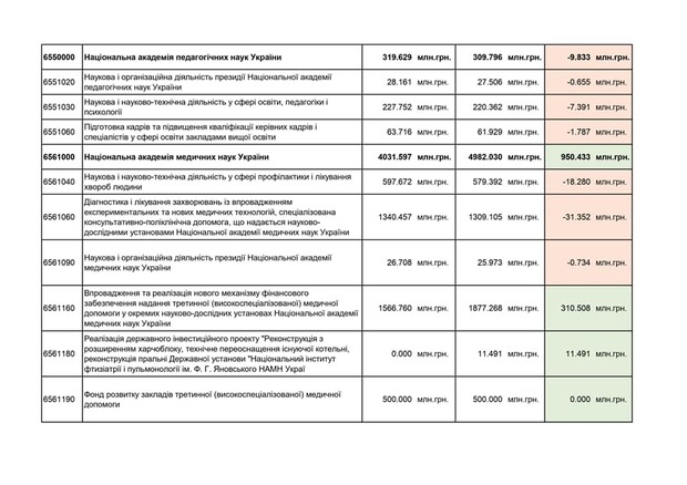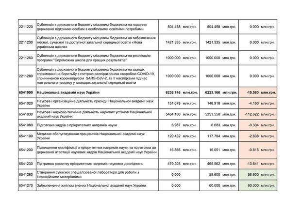 - Фонду розвитку закладів передвищої і вищої освіти (мінус 500 мільйонів, які пішли б на капітальний ремонт гуртожитків чи на обладнання для навчання);