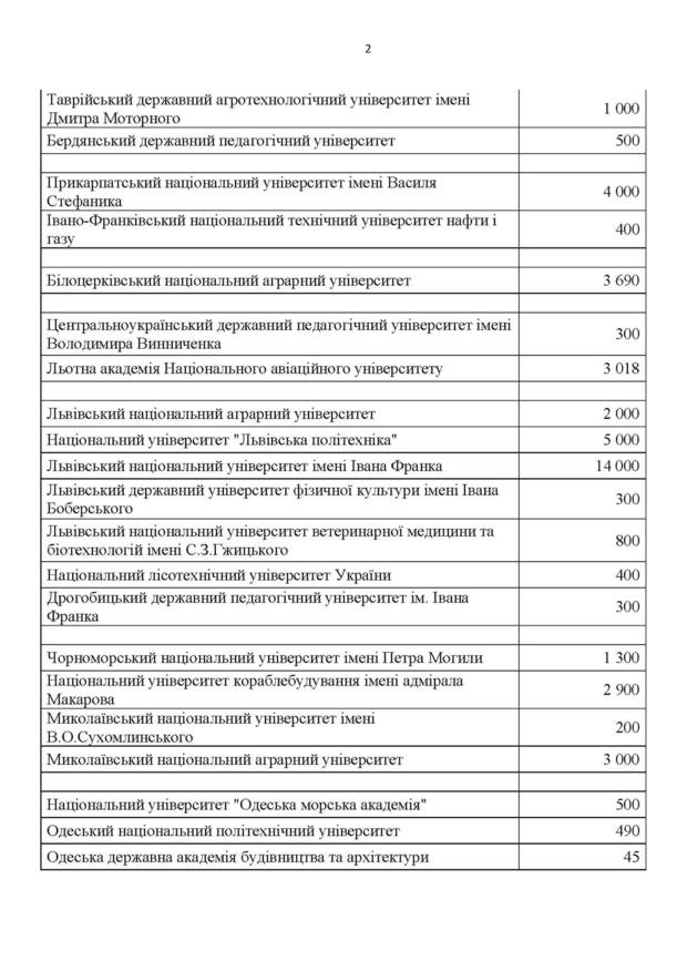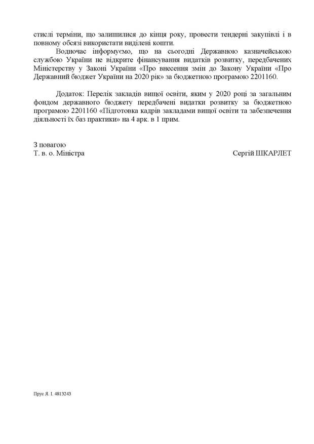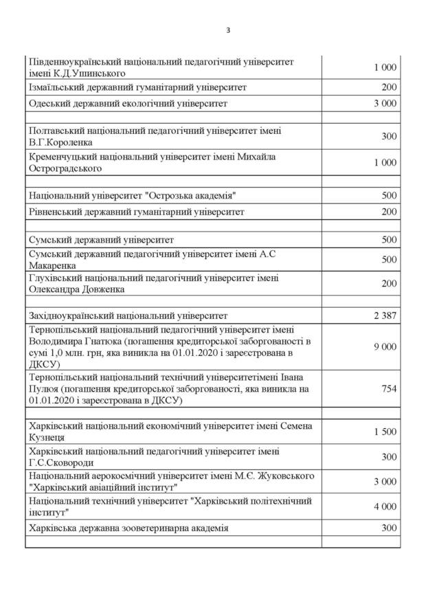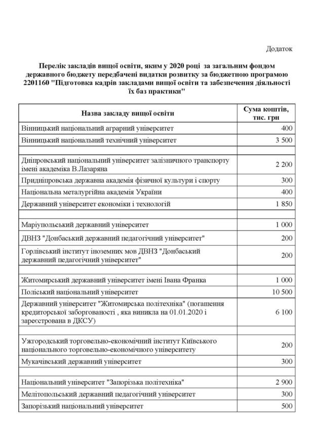 У Державному бюджеті України на 2020 рік у окремій статті «Фонд розвитку вищої освіти» було передбачено 500 млн гривень на капітальні видатки закладів вищої освіти (що включає в себе – ремонти, будівництво, протипожежну безпеку тощо). Розподіл цих коштів мала здійснювати спеціально створена конкурсна комісія, куди мали б увійти народні депутати з бюджетного комітету ВР і представники МОН, за прозорою і офіційно оприлюдненою процедурою. Розподіл мав бути здійснений за критеріями, затвердженими Кабміном відповідно до статті 26 Закону України «Про державний бюджет України».
