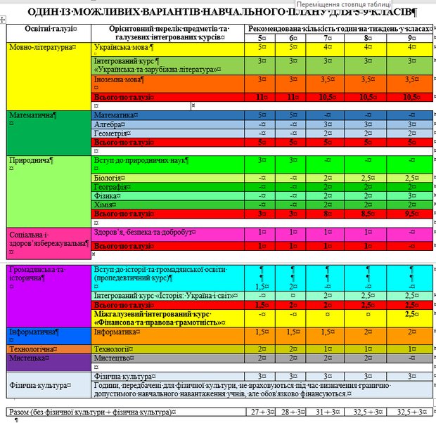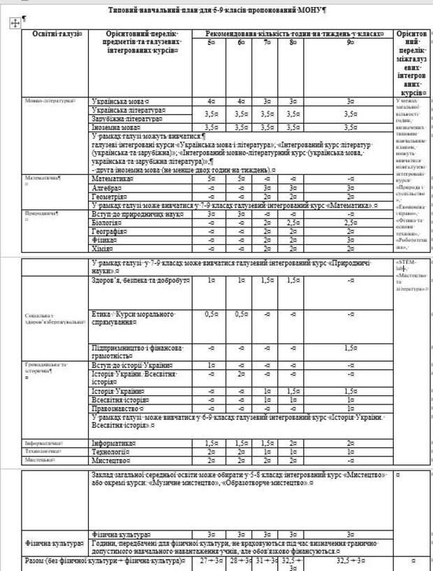 - №2 — складений мною орієнтовний варіант Навчального плану для 5-9 класів;