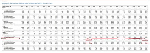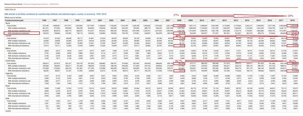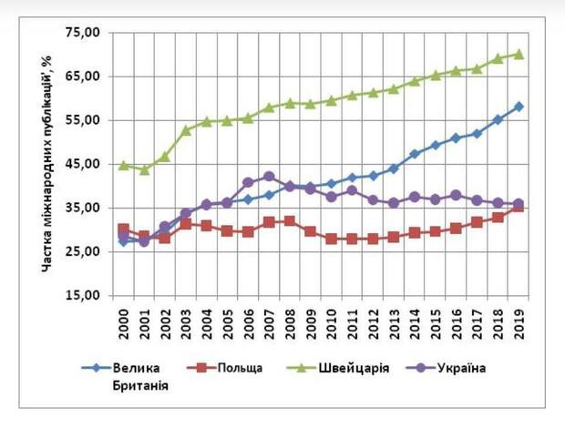 Цікавим є той факт, що з нашими 36,25% наукових публікацій з зарубіжними співавторами ми значно випереджаємо середній у світі показник – 23%, але стурбованість викликає саме тенденція, бо за період з 2008 по 2018 роки у провідних країнах світу, таких як США, Канада та Австралія, частка наукових публікацій з міжнародними авторськими колективами зросла з 27,6% до 39,2% (у США) і з 42% до 55,4% (у Канаді), з 41% до 59% (в Австралії).