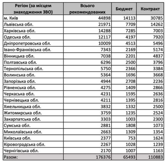 А ще маємо понад 65 тисяч вступників, які отримали бюджетне місце (покриття повної вартості навчання).