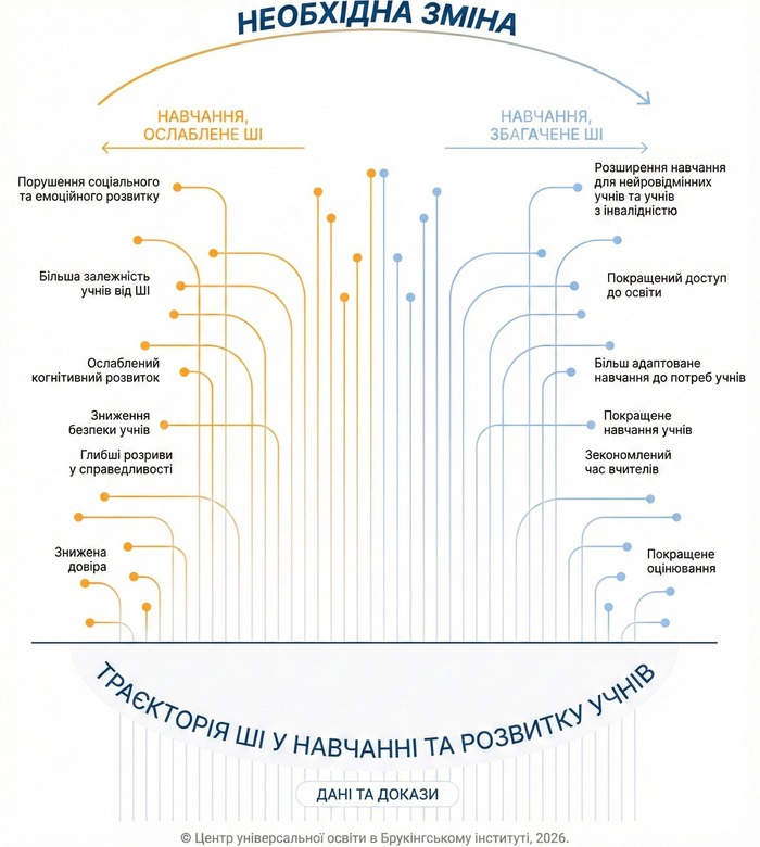 Вийшов великий звіт Brookings про можливості освіти у ШІ-світі. У ньому підіймається питання не про те, що ШІ може зробити для освіти. Питання в тому, як ми маємо використовувати ці інструменти, якщо ми серйозно ставимось до когнітивного, соціального та емоційного розвитку дітей.