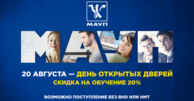 Присоединяйтесь к большой и дружной семье МАУП! Приходите на День открытых дверей в МАУП и получайте скидку 20% на обучение. Мероприятие состоится 20 августа с 9:00 до 14:00 во всех региональных подразделениях академии, а также в Киеве. Для удобства необходимо зарегистрироваться на специальном сайте.