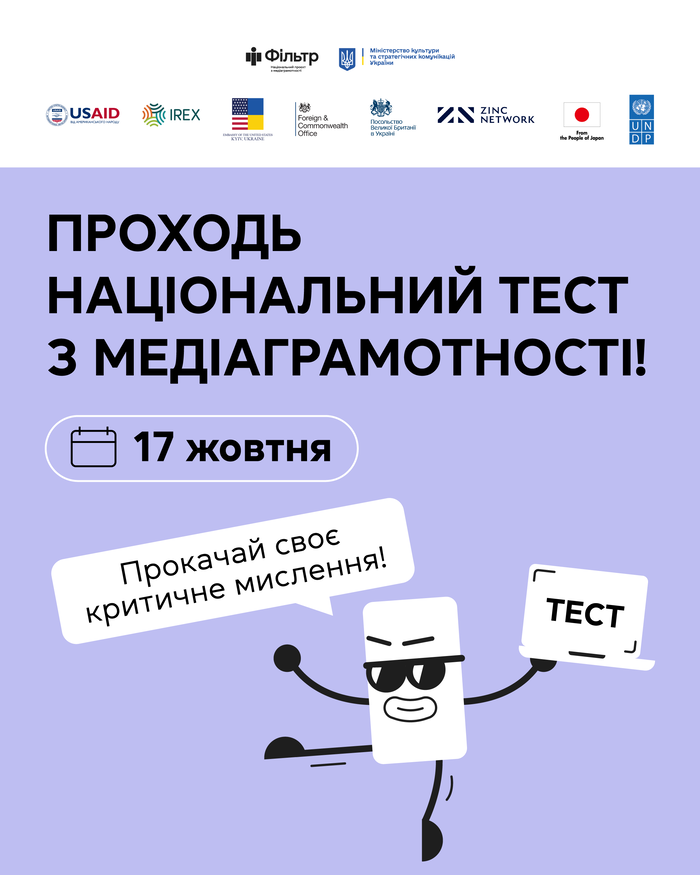 Национальный тест по медиаграмотности является частью мероприятий, посвященных Глобальной неделе медиаграмотности, которую отмечают во всем мире с 24 по 31 октября.