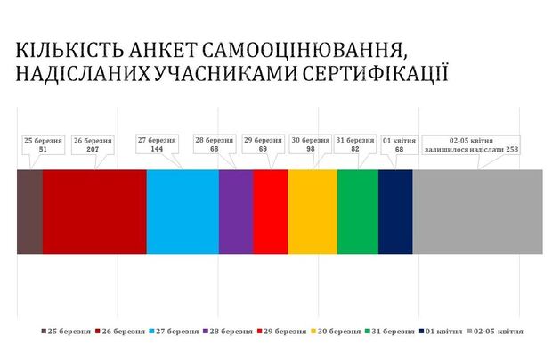 «По состоянию на 01.04.2020 в Государственную службу качества образования Украины уже поступило 787 анкет самооценивания. Времени остается не так много. Мы искренне болеем за каждого участника сертификации и ждем остальных писем», - отметил чиновник.