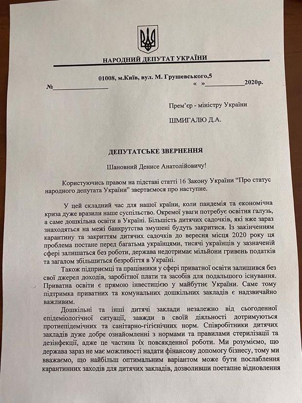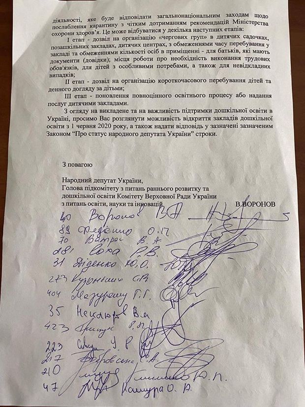 Соответствующее обращение инициировано главой подкомитета по вопросам раннего развития и дошкольного образования Комитета ВР по вопросам образования, науки и инноваций Владимиром Вороновым.