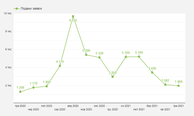 Аналитические данные сервиса BUKI - на графике показано количество заявок в областных центрах Украины, без учета заявок в малых городах и на занятия онлайн.