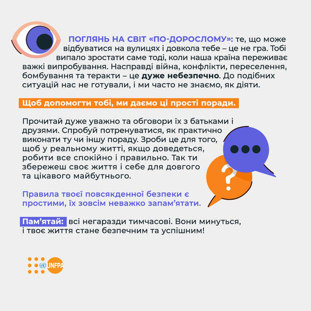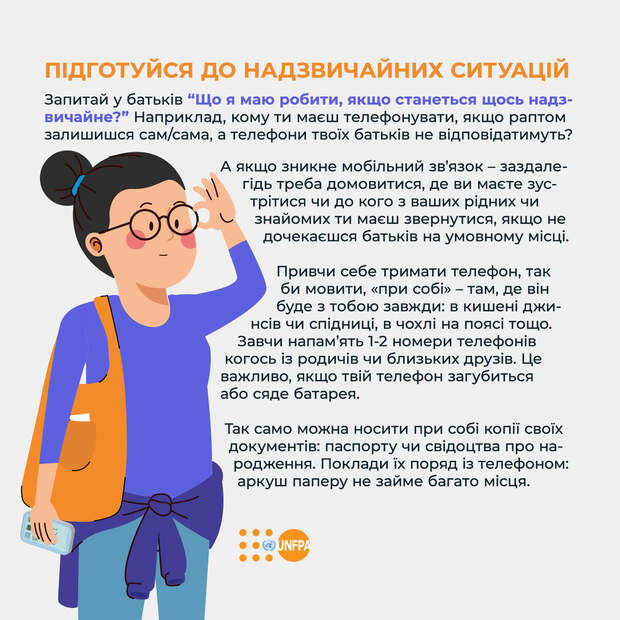 Как подросткам обезопасить себя во время военных действий? Фонд Народонаселения ООН в Украине подготовил краткие советы для молодежи по поводу того, как подготовиться к опасности и действовать в случае, если родителей нет рядом.