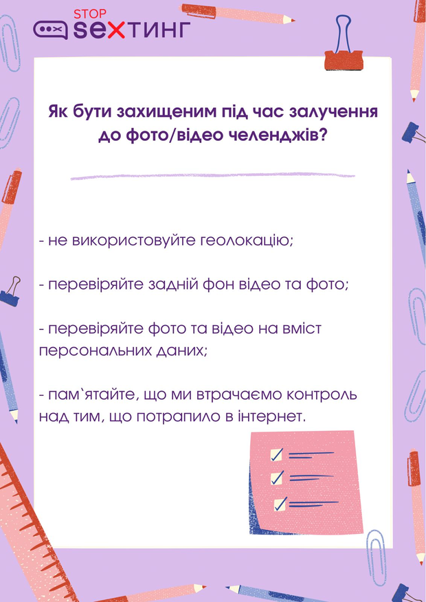 - Пам’ятайте, що ми втрачаємо контроль над всім, що ми надсилаємо в інтернеті: чи то публікуємо на своїй сторінці, чи надсилаємо комусь в приватні повідомлення, або ж викладаємо в сторіс на 24 години. Ми ніколи не знаємо, де далі опиниться наше фото і хто його буде використовувати для власних цілей.