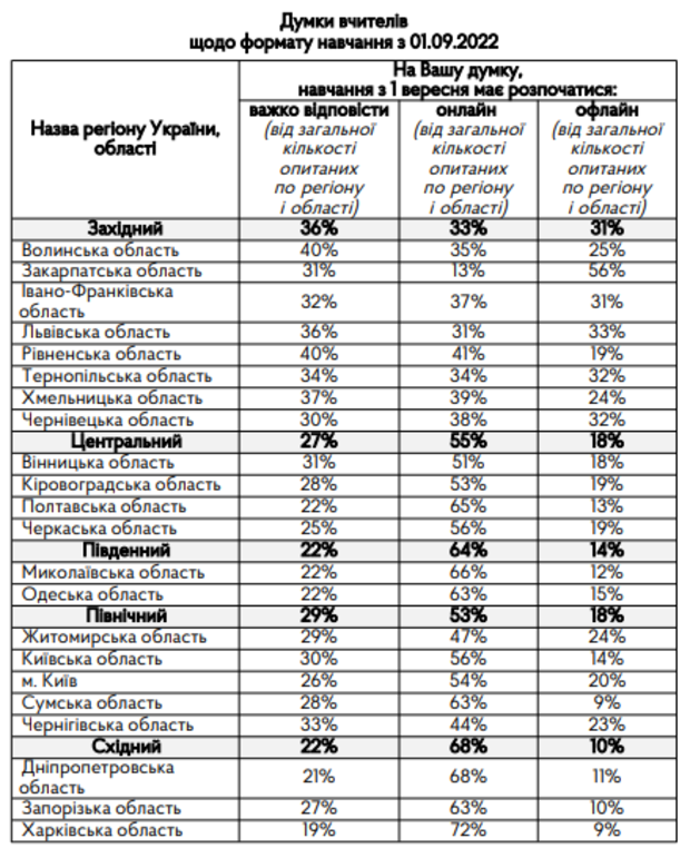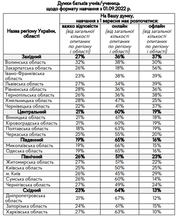 В частности, офлайн-обучение в Западном регионе поддерживают 37% родителей и 31% учителей.