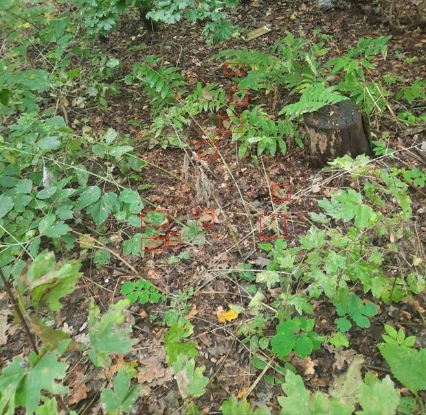 Що ж до фото, то на ньому 10 вибухонебезпечних предметів (відмічено червоним). І це – на такій невеликій ділянці землі.