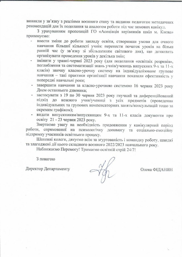 Соответствующая рекомендация предоставлена киевским Департаментом образования и науки.
