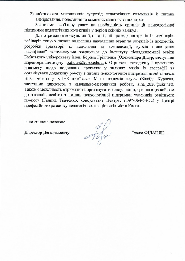 В свою очередь, директора школ в течение осенних каникул должны организовать работу не только кружков и консультаций для учеников, но и повышение квалификации для учителей.