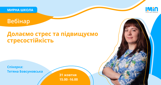 Институт мира и понимания в рамках проекта «Мирна школа» приглашает подростков и педагогов приобщиться к онлайн-вебинару на тему «Долаємо стрес та підвищуємо стресостійкість».