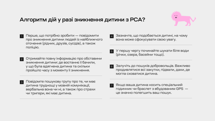 Розпочинаючи пошук дитини із РСА, яка загубилася, варто врахувати її індивідуальні особливості та реакції на стресові ситуації.