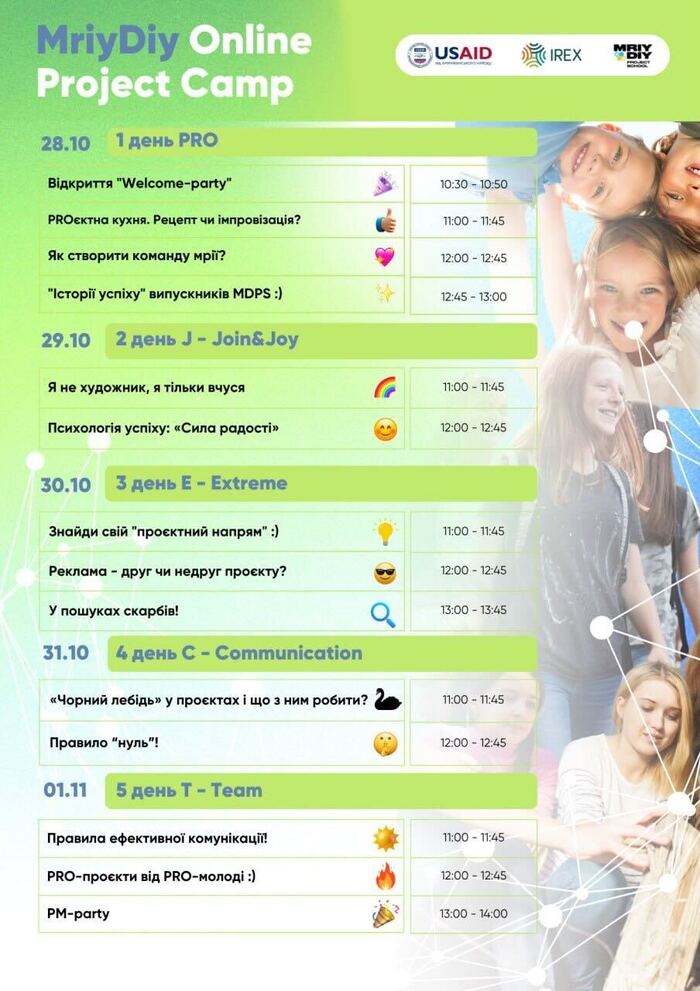 Project Camp – пятидневный онлайн-лагерь для украинских подростков, которые находятся в Украине и за рубежом.