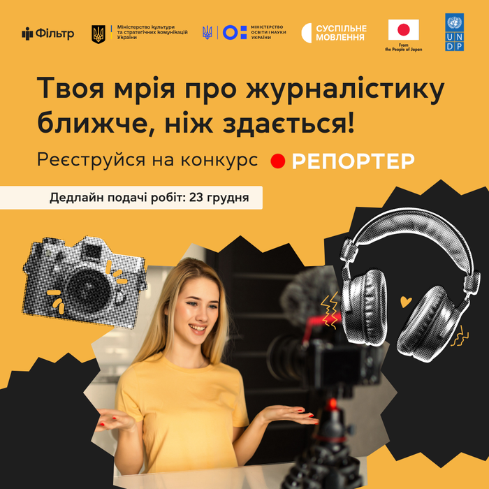 Национальный проект по медиаграмотности "Фильтр" Министерства культуры и стратегических коммуникаций Украины начал конкурс ученических видеосюжетов "Репортер".