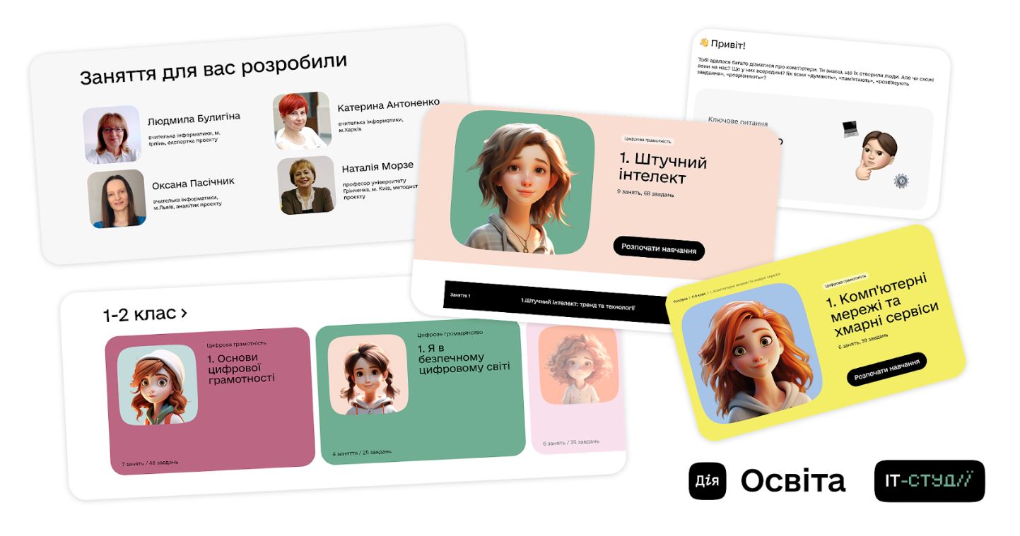 Именно поэтому современная информатика в школах должна знакомить детей с этими темами. В обновленных IT-студиях на отдельном модуле Дія.Освіта уже можно найти интерактивные уроки по темам искусственного интеллекта, облачных вычислений и онлайн-безопасности. Программа последовательно готовит учеников к практическому использованию технологий в реальности и онлайн.