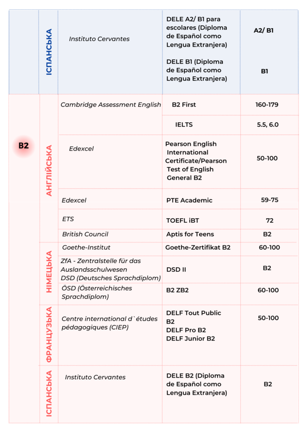 Выпускникам, которые получат международный сертификат (диплом) языкового экзамена уровня В-1, В-2 (и выше) в период с 09 марта по 07 июня 2022 года по английскому языку (до 06 июня – по испанскому, немецкому, французскому языку) и которые будут проходить ДПА по иностранному языку в форме ЗНО, в приложение к аттестату о среднем образовании (по обращению получателя образования) выставляется оценка за аттестацию по иностранному языку 12 баллов.