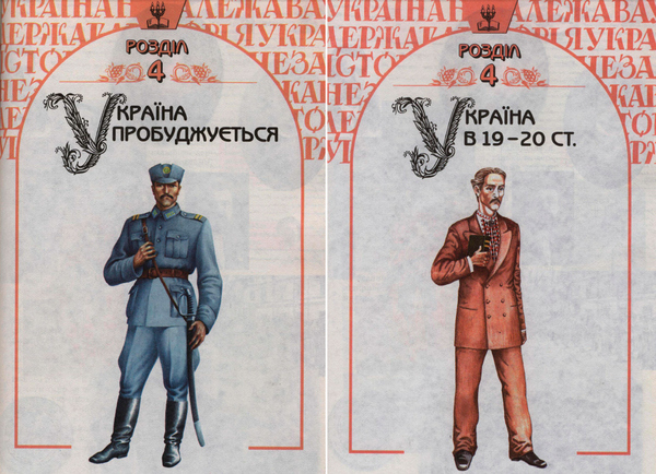 Розділ, що об’єднує параграфи від Котляревського до незалежності в 1991 році спочатку називався «Україна пробуджається», а у 2007 році був замінений на «Україна у 19‑20 ст.», таким він дійшов і до видання 2010 року. Доволі красномовною є і зміна ілюстрації до розділу, яка сталась теж у 2007 році.