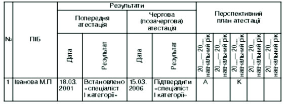 Перспективний план курсової перепідготовки (К) й атестації (А)