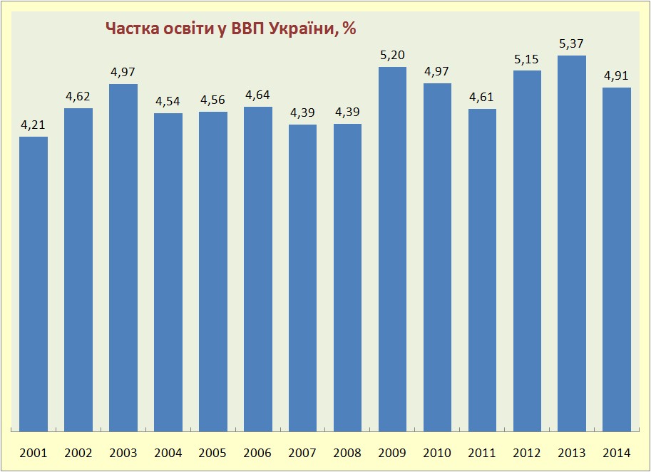 Частка освіти у валовому внутрішньому продукті України (розраховано за даними http://www.ukrstat.gov.ua)