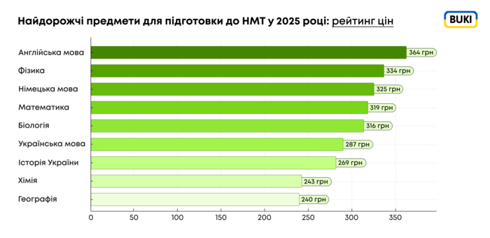 Какие предметы для подготовки к НМТ самые дорогие?