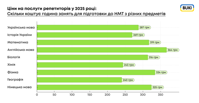 Если сравнивать цены 2024 и 2025 годов, к началу 2025 года средний чек на репетиторов для подготовки к НМТ вырос с 268 грн до 291 грн, то есть на 8,6%. К основным причинам увеличения стоимости относятся: