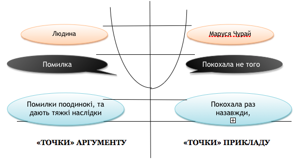 Схематично відповідність наведених аргументу й прикладу можна зобразити в такий спосіб.