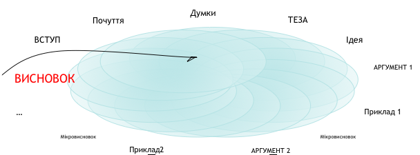 Це момент істини: якщо все, що снувалося-плелося в тексті, наприкінці легко об’єднується в цілісність останньою ниткою-висновком і не розповзається, значить павутина-текст досконала. Отже, теза, аргументи й приклади до них створюють логічне, послідовно організоване ціле, яке тримається купи й легко вібрує під найменшим порухом останньої нитки – висновків.