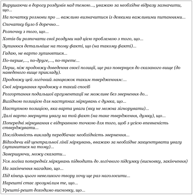 Мовні (метатекстові) засоби логізації викладу думок у власному висловленні