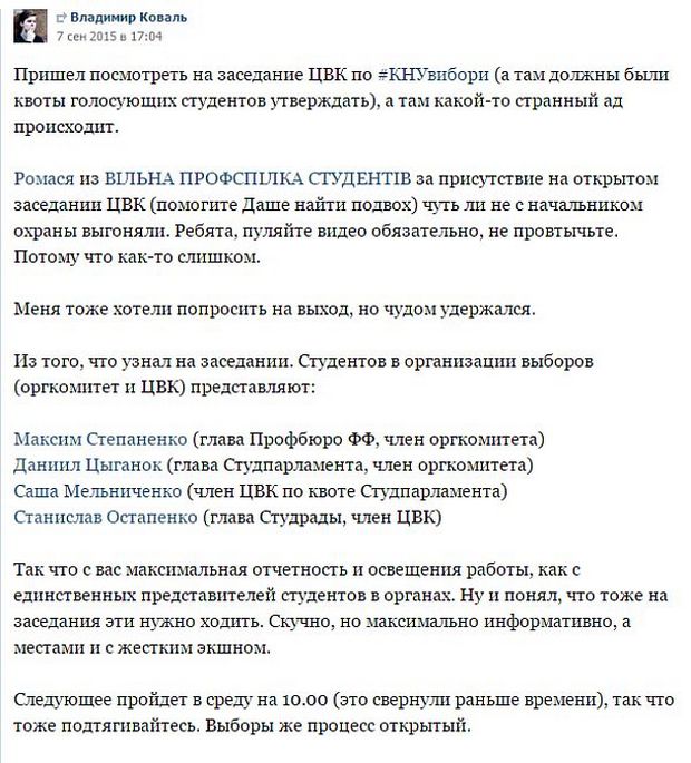 Как рассказал "Украинской правде. Жизнь" один из студентов-активистов Владимир Коваль, студентов еще с лета "держали" комиссией, переносили раз за разом.