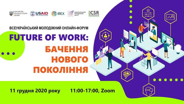 11 декабря 2020 года молодежь со всей Украины приглашают принять участие в онлайн-форуме «Future of Work: видение нового поколения». Интерактивный форум, посвященный теме работы будущего, соберет вместе топ-менеджеров, экспертов ведущих компаний и молодежь, чтобы они поделились своим видением работы и трудоустройства в Украине через несколько лет.