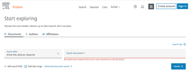 Для того щоб скористатися цими інструментами, потрібно зайти на сайт бази даних Scopus і задати параметри пошуку в графі “Search documents” (наприклад, можна ввести ключове слово).
