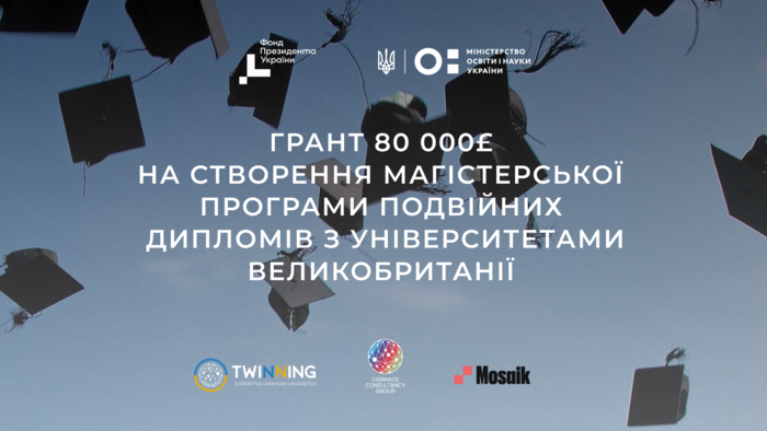 При поддержке Фонда Президента Украины по поддержке образования, науки и спорта Cormack Consultancy Group совместно с Mosaik Education объявляют конкурс на грантовую поддержку создания магистерской программы двойных дипломов между украинскими и британскими университетами в рамках инициативы Twinning.