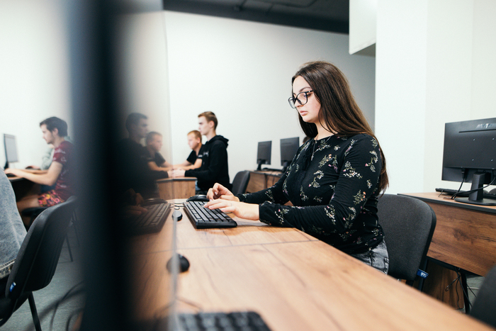 Отдельный пункт – качественная материально-техническая база и оборудование. Будущие журналисты могут оттачивать навыки в высокотехнологичной студии, хореографы занимаются в современных танцевальных просторах, а у молодых юристов есть аудитория, которая полностью воспроизводит зал судебных заседаний.